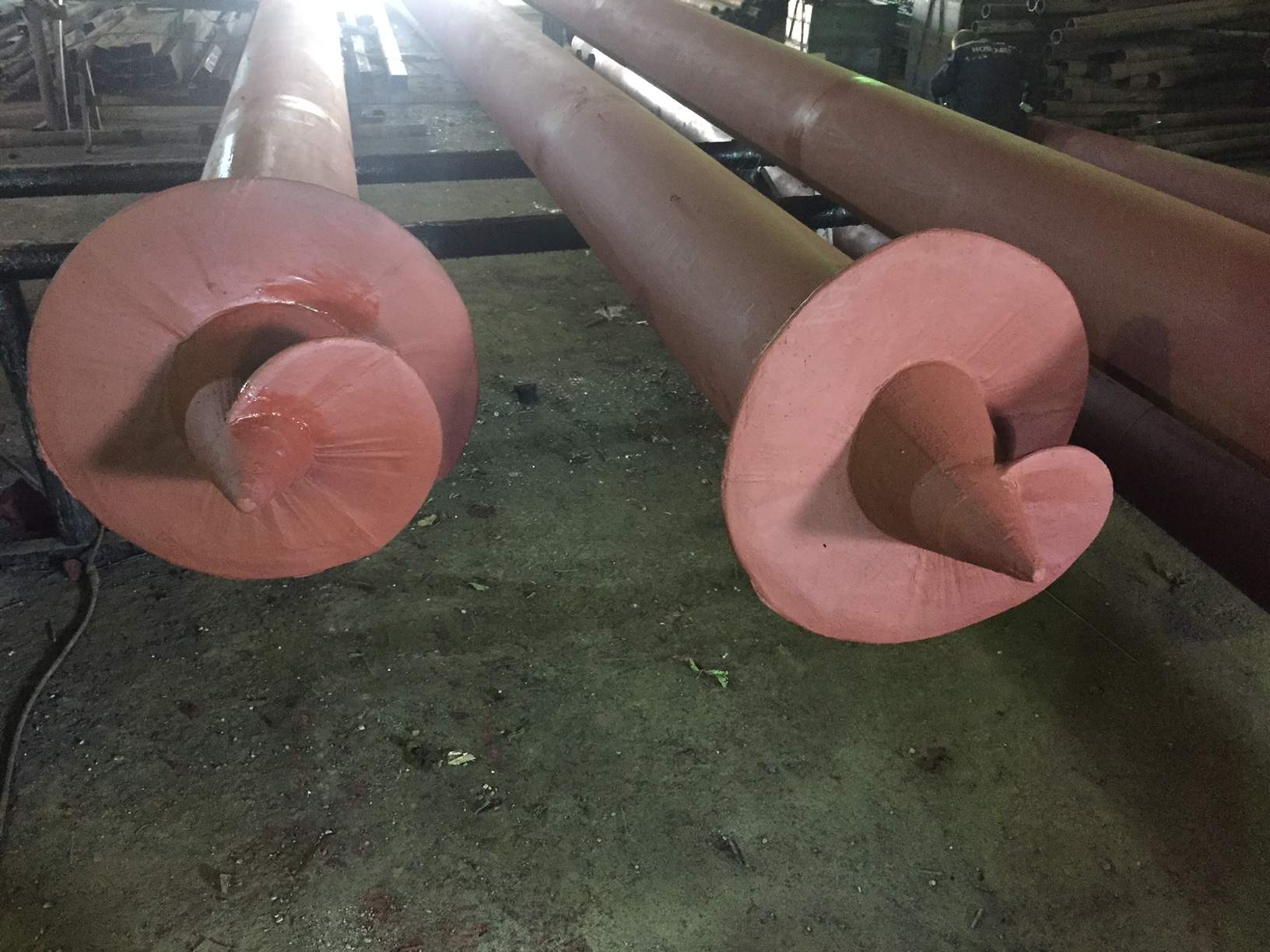 Фото свай и анкеров винтовых серии 3.407.9-158 изготовленных на нашем заводе в Березняках: